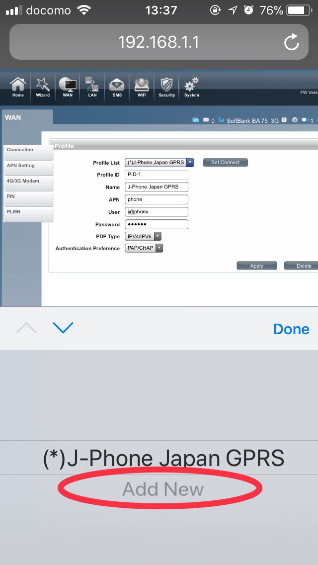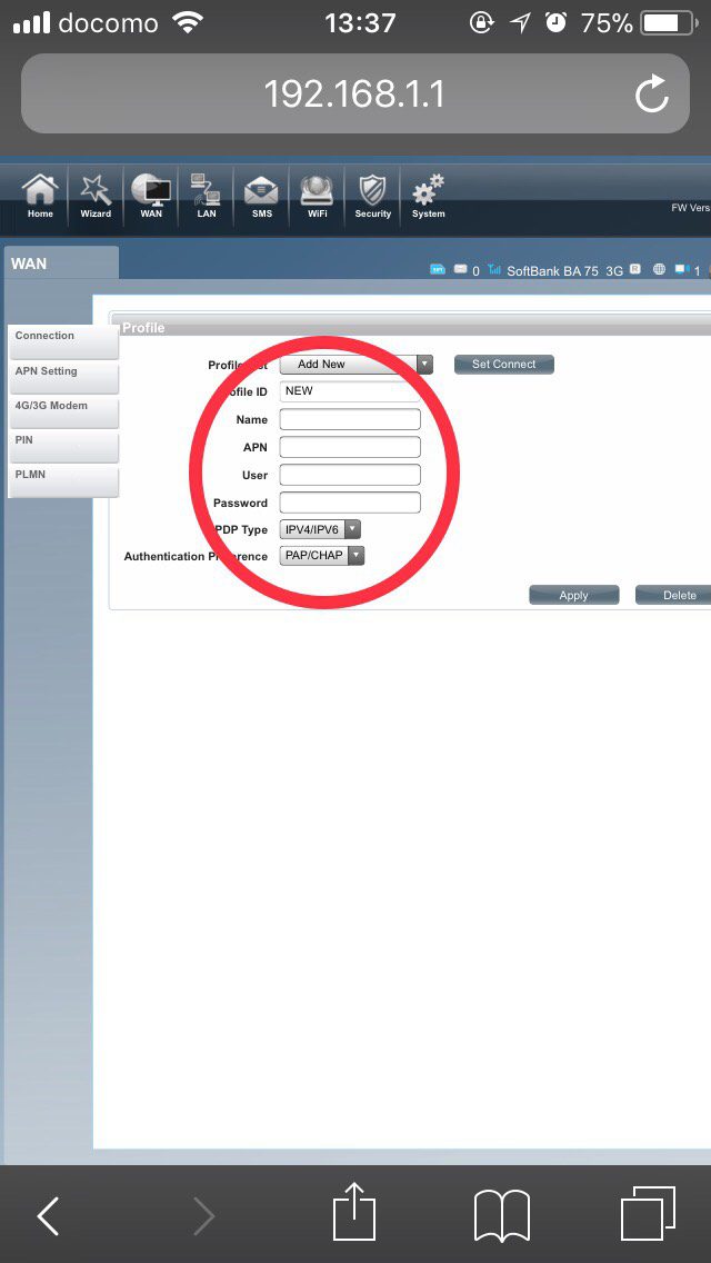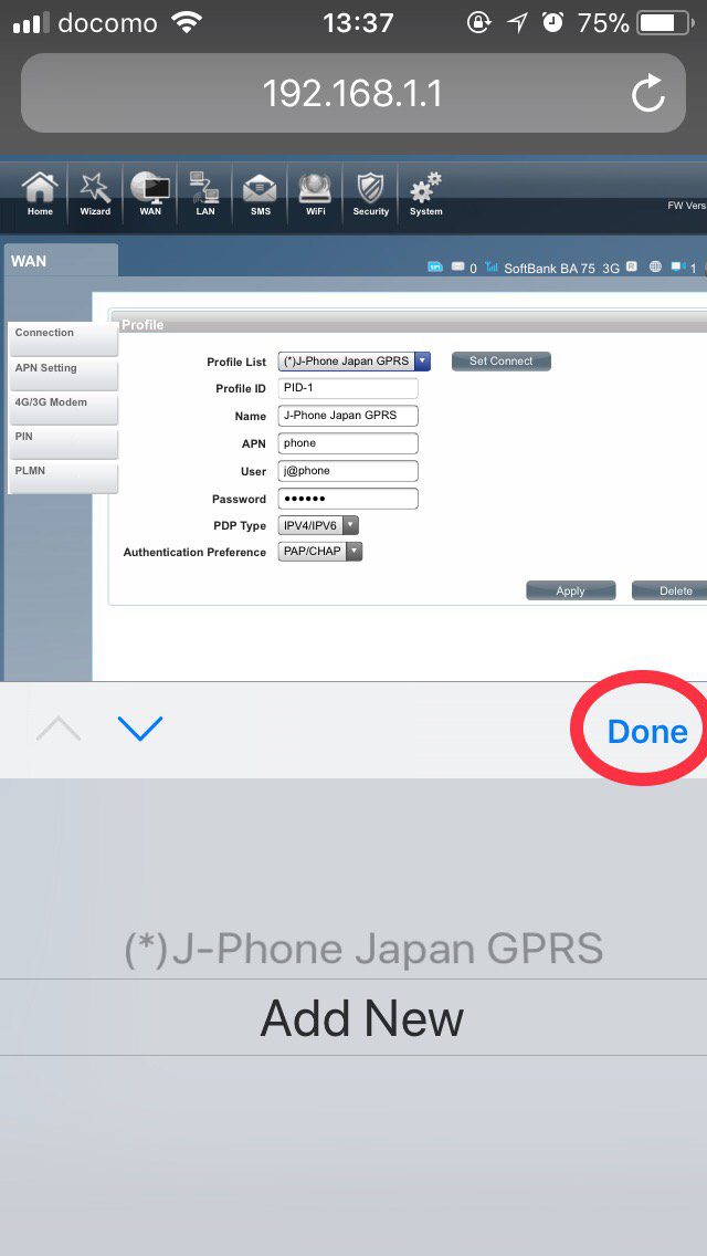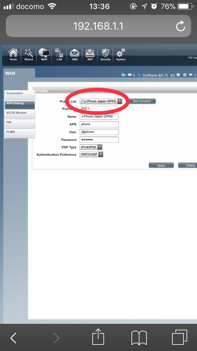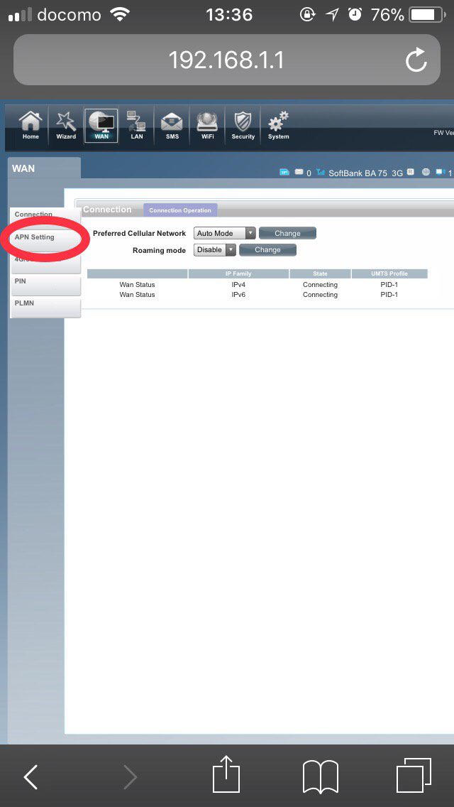 Click “APN setting” from tab on the left side