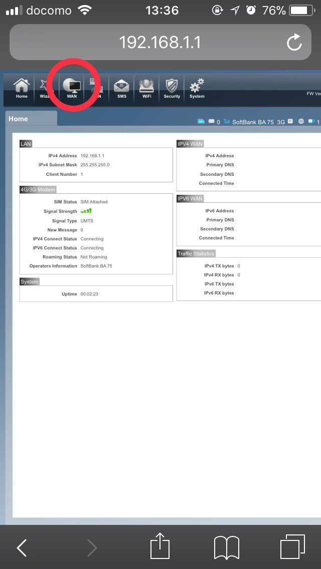 - After successfully login, click “WAN” at the top tab