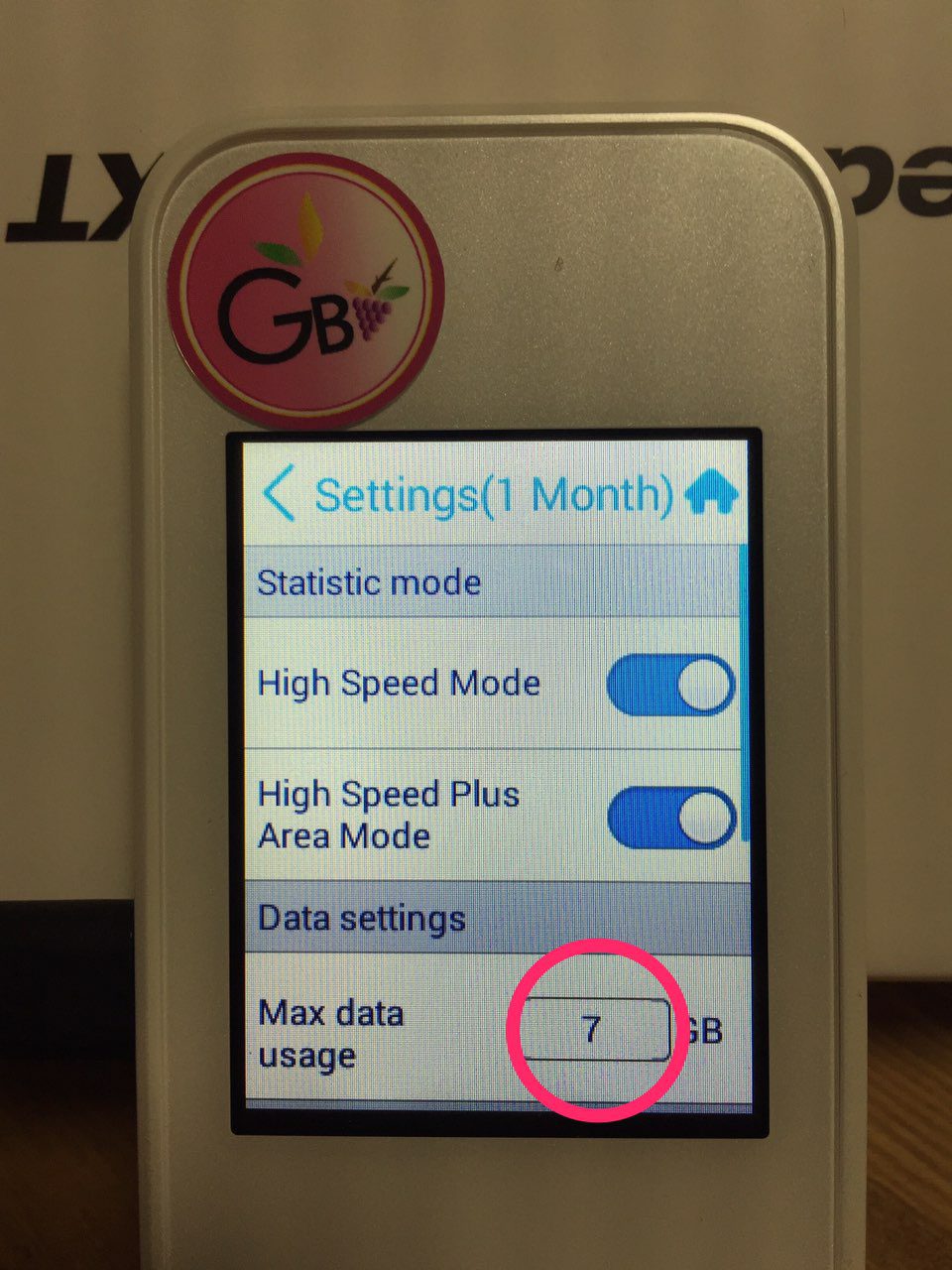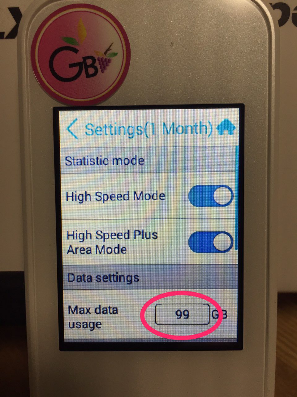 Here is how to set GB as 99GB on English version of Speed WiFi W04